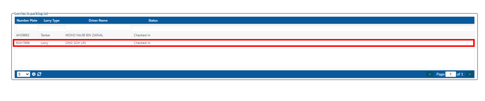 - Click "Register" to confirm details and the registration is now completed and the information is now available in the "Lorries in Parking Lot" section/table.